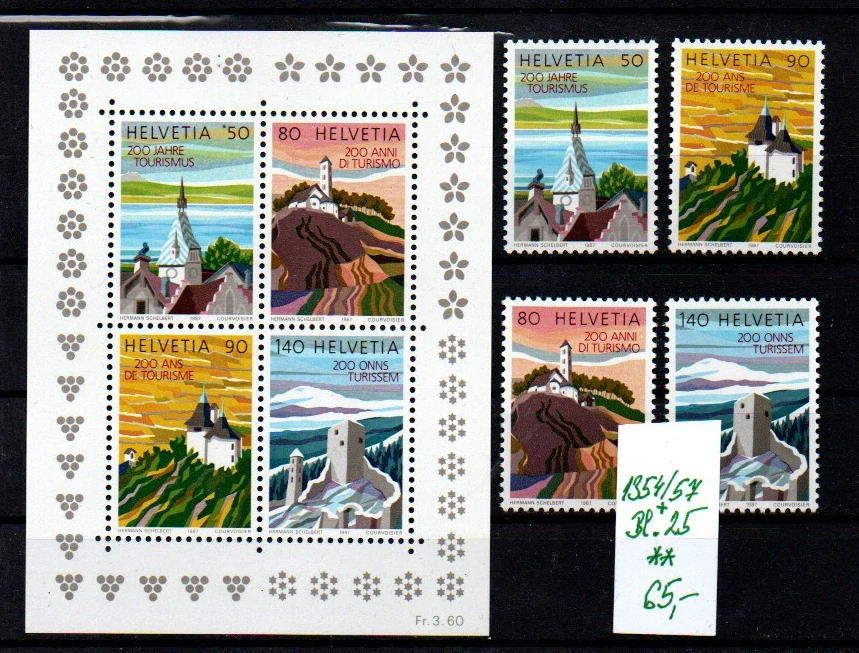 Švýcarsko, serie + aršík turismus, č.1354/57 + Bl.25, kvalita xx. 26.03.2026