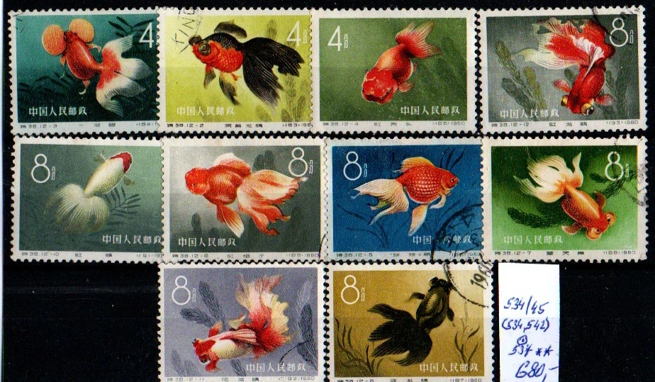 Čína, série č.534/545 - rybičky, chybí č.534 a 542, kvalita o, xx. 24.04.2026